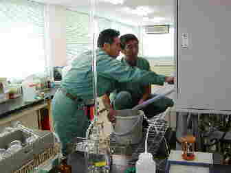 2002年 9月 18日 仁井田浄水場で研究の打ち合わせと、ジャーテストを見学しました。